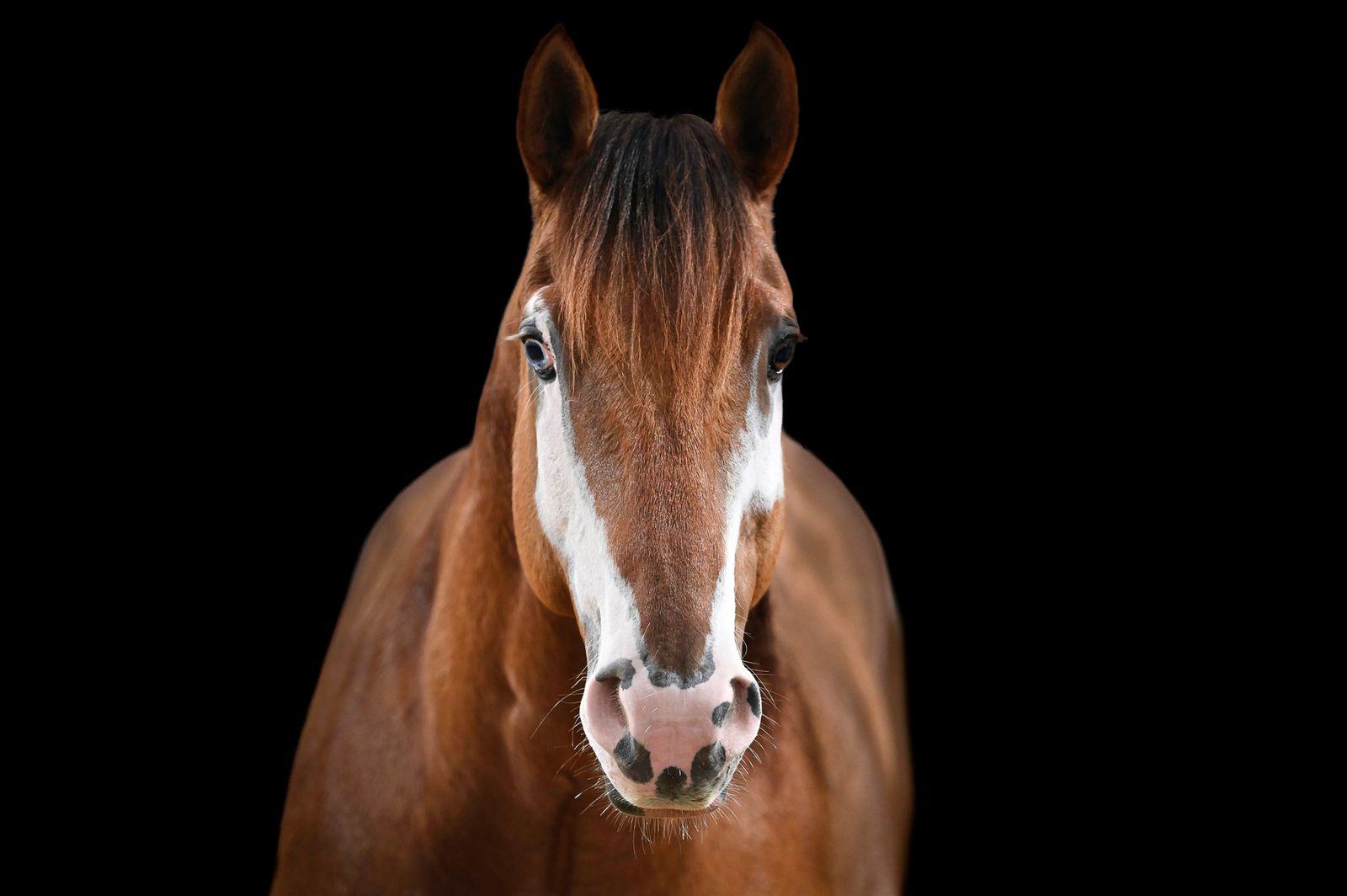 This mare traces back to Cigale, the founder of the first formally identified dominant white variant (W1). Freibergers with this mutation are all-white or near-white. One of the quirks of this family, however, is that they often have more intense color when they are foals. This fades as the horse matures, leaving dark speckling on the skin or a mix of colored and white hairs. If you look closely at the pictures of Gavotte, her skin spots are visible.